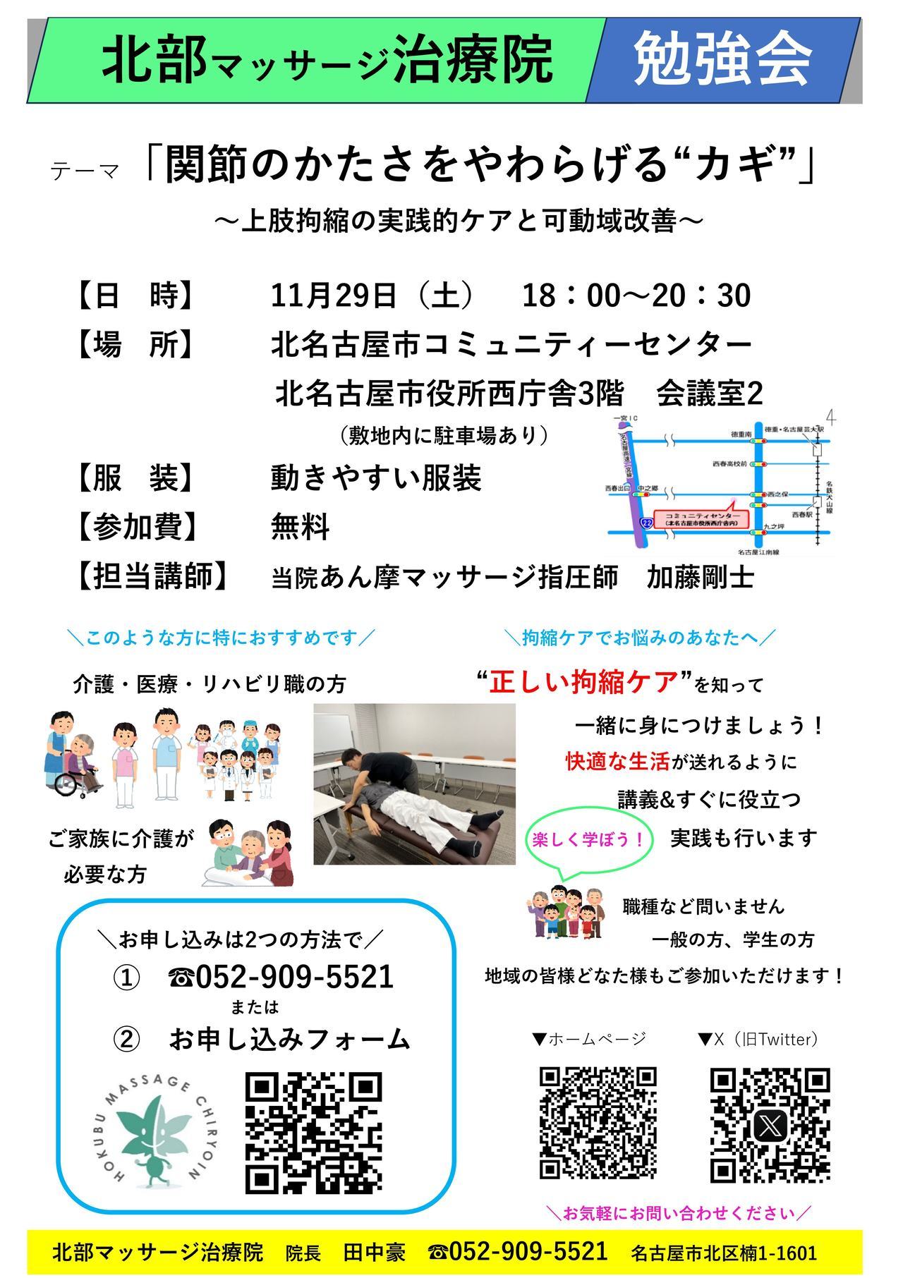 平素は北部マッサージ治療院をご利用いただき誠にありがとうございます。