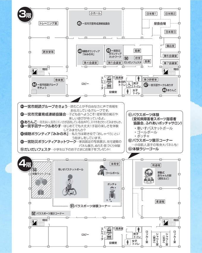 私たち親子は4階・体育室のパラスポーツ体験コーナーで活動予定(^^)
